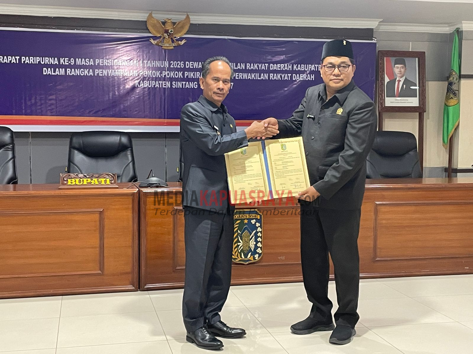 SINTANG [www.mediakapuasraya.com]- DPRD Kabupaten Sintang menggelar Rapat Paripurna ke-9 Masa Persidangan I Tahun 2026 pada Rabu, 1 April 2026. Rapat teraebut dalam rangka penyampaian pokok-pokok pikiran DPRD untuk Tahun Anggaran 2027 kepada pemerintah daerah.