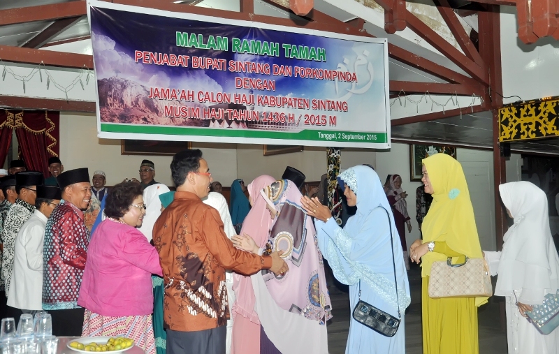 SINTANG-KALBAR, (MKR): Pemerintah Kabupaten Sintang mendukung dan mendorong masyarakat Kabupaten Sintang untuk menunaikan rukun Islam yang ke-5 yakni melaksanakan ibadah haji. hal tersebut disampaikan Penjabat Bupati Sintang Drs. Alexius Akim, MM saat menjamu dan beramah tamah dengan 102 calon jamaah haji Kabupaten Sintang tahun 2015 di Pendopo Bupati Sintang pada Rabu, 2 September 2015.