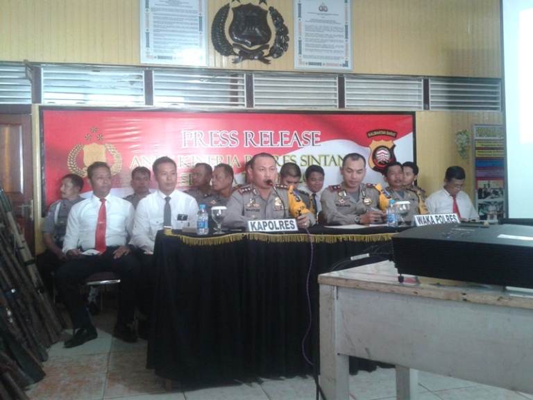 SINTANG [mediakapuasraya.com] –Sepanjang tahun 2015, sedikitnya 224 kasus kejahatan konvensional  yang ditangani polres sintang, dari jumlah tersebut sebanyak 236 kasus atau  105,3 persen kasus yang berhasil diungkap. Hal tersebut disampaikan Kapolres Sintang AKBP Mahyudi Nazriansyah saat  Press Release kinerja Jajaran Polres Sintang selama satu tahun dihadapan sejumlah awak media belum lama ini.