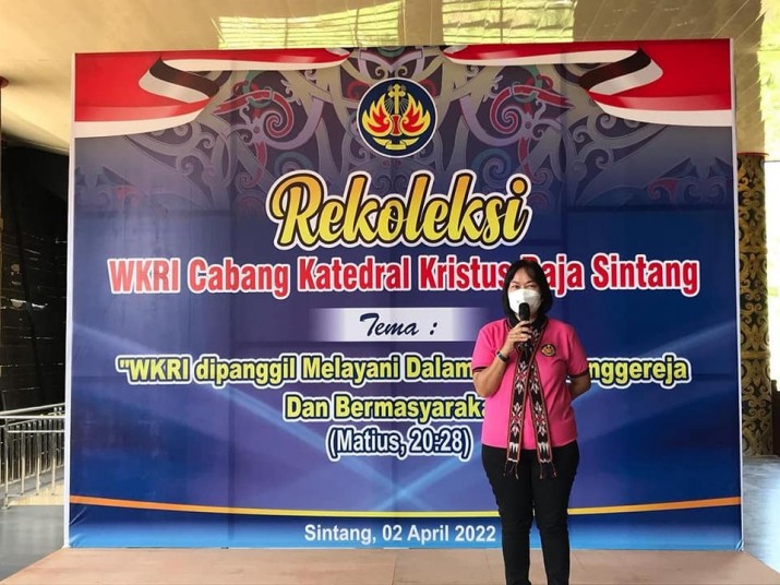 Hendrika Ketua Wanita Katolik Republik Indonesia (WKRI) Cabang Katedral Kristus Raja Sintang menyampaikan rekoleksi diikuti oleh anggota WKRI yang ada di ranting-ranting. “kegiatan rekoleksi diikuti anggota WKRI dari 8 ranting yang ada pada Cabang WKRI Kristus Raja Katedral Sintang. Jumlah anggota WKRI yang bisa hadir mencapai 357 orang. Rekoleksi bisa berjalan dengan lancar di Rumah Betang Sintang. Terima kasih kepada Ibu Sekda yang sudah membuka kegiatan. Dan bangga atas keharian anggota WKRI. Kita menghadirkan dua orang narasumber yakni Suster Paulin dan Pastor Antonius Gatot Wibowo, SMM” terang Hendrika
