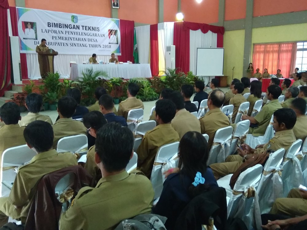 Wakil Bupati Sintang Drs. Askiman, MM membuka pelaksanaan Bimbingan Teknis Laporan Penyelenggaraan Pemerintahan Desa Di Kabupaten Sintang Tahun 2018 di Gedung Pancasila pada Senin, 8 Oktober 2018.