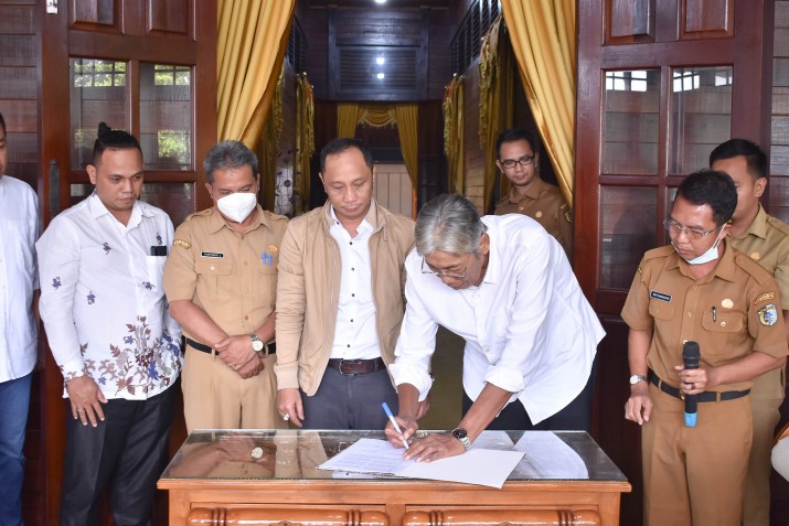 Sintang-www.mediakapuasraya.com-Pemerintah Kab. Sintang bersama PT. Kusuma Jaya Agro melakukan penandatanganan MoU terkait pengolahan sampah menjadi bahan bakar Batu Bara untuk PLTU Sui Ringin, di Pendopo Bupati Sintang, Selasa, 19 April 2022.