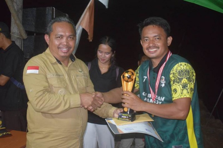 Juara 3 Sapujagat FC dari Kecamatan Kwtungau Hilir mendapat hadiah uang pembinaan sebesar Rp. 3.000.000,-