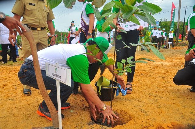 SINTANG-KALBAR, (MKR): Pelaksanaan Hari Menanam Pohon Indonesia Se Kalimantan Barat merupakan sebuah kegiatan edukasi, meningkatkan kepedulian dan kemandirian seluruh komponen bangsa akan penting menanam dan memelihara pohon secara berkelanjutan untuk mitigasi perubahan iklim dan merehabilitasi hutan dan lahan. Demikian disampaikan Asisten Administrasi Perekonomian dan Kesejahteraan Sosial Setda Propinsi Kalimatan Barat Lensus Kandri saat membacakan sambutan Gubernur Kalbar Cornelis pada acara Hari Menanam Pohon Indonesia Se Kalimantan Barat yang dilaksanakan di Galeri Motor Bandong Desa Jerora Kecamatan Sintang pada Selasa, 24 Nopember 2015.