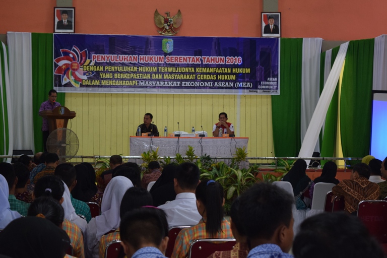 SINTANG [www.mediakapuasraya.com]- Pemerintah Kabupaten Sintang melaksanakan penyuluhan hukum serentak 2016 di Gedung Pancasila Sintang, Kamis (28/01). Penyuluhan tersebut diikuti ratusan peserta yang terdiri dari Aparatur Sipil Negara (ASN) dan pelajar SMA sederajat di Sintang.