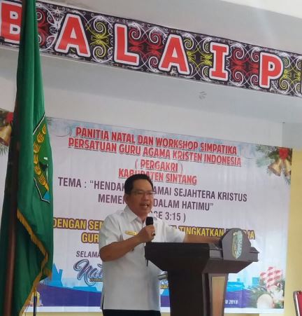 Sintang-www.mediakapuasraya.com-Persatuan Guru Agama Kristen Indonesia(PERGAKRI) Kabupaten Sintang pada Rabu, 31/01/2018 melaksanakan kegiatan Natal bersama dan Workshop di Aula Balai Pegodai Rumah Dinas Wakil Bupati Sintang dan dibuka langsung Wakil Bupati Sintang Drs, Askiman MM.