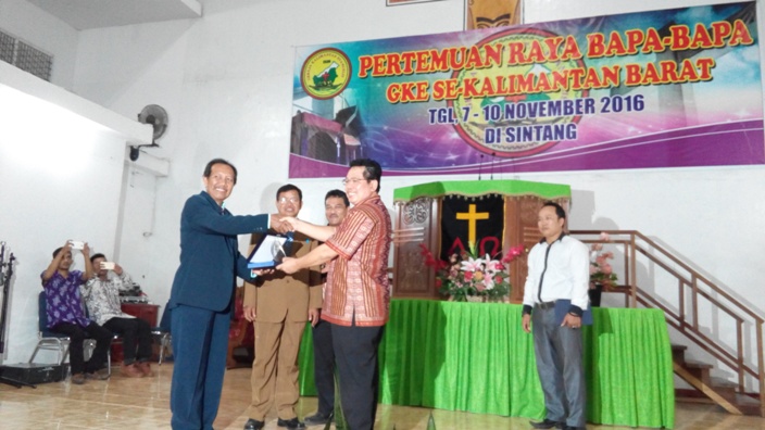 SINTANG [www.mediakapuasraya.com]- Wakil Bupati Sintang, Askiman membuka acara temu raya Bapa-Bapa Gereja Kalimantan Evangelis (GKE) di GKE Petra Sintang, Jalan PKP Mujahidin Sintang, Senin (8/11/2016) malam.