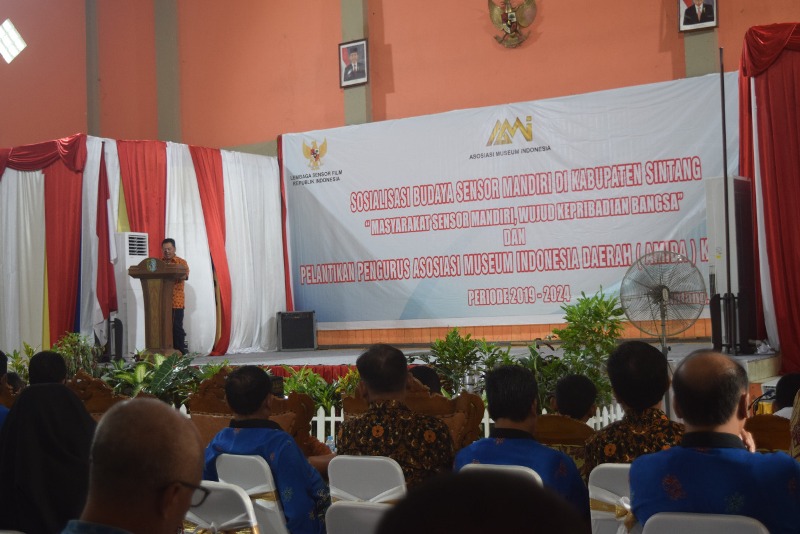 Sintang-www.mediakapuasraya.com-Wakil Bupati Sintang, Drs. Askiman, MM membuka dua kegiatan budaya di Gedung Pancasila Sintang, Kamis (21/03/2019). Kegiatan pertama, sosialisai budaya sensor mandiri di Kabupaten Sintang. Kegiatan kedua, pelantikan pengurus Asosiasi Museum Indonesia Daerah (AMIDA) Kalimantan periode 2019-2024.