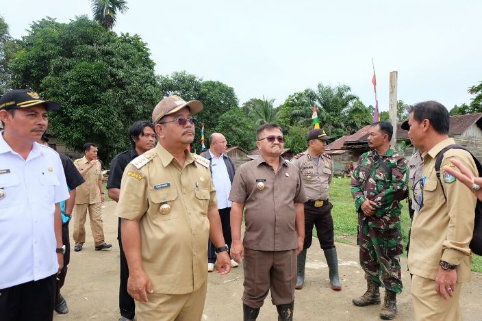 Usai tatap muka dengan masyarakat, Bupati, wakil bupati dan rombongan menuju kantor Desa Bungkong baru yang baru saja dibangun oleh pemerintah Kabupaten sintang.