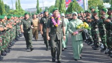 SINTANG [www.mediakapuasraya.com)-Danrem 121/Abw Kolonel Inf Widodo Iryansyah, S.Sos, M.M. didampingi Ketua Persit KCK Koorcab Rem 121 PD XII/Tpr Ny. Dwi Widodo tiba