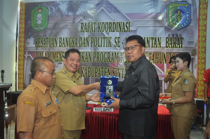 SINTANG [www.mediakapuasraya.com]- Dalam rangka mensinergikan program kegiatan tahun 2016, Kabupaten Sintang ditunjuk sebagai tuan rumah penyelenggaraan Rapat Koordinasi Kesatuan Bangsa dan Politik se-Kalimantan Barat tahun 2016, di Ballroom Hotel My Home yang dibuka langsung oleh Wakil Bupati Sintang didampingi oleh Kepala Kantor Kesatuan Bangsa dan Politik Provinsi Kalimantan Barat dan Kabupaten Sintang, serta Pimpinan SKPD dilingkungan Pemkab Sintang, Selasa (29/3)