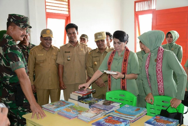 BENGKAYANG [www.mediakapuasraya.com]-Wakil Ketua Persit Kartika Chandra Kirana Daerah XII/Tanjungpura Ny. Cicilia Evie Denny D. Tuejeh meresmikan Perpustakaan Desa Tanjung, Kecamatan Teriak, Kabupaten Bengkayang, Selasa (13/11/2018). Peresmian perpustakaan dilakukan disela kegiatan mendampingi Kepala Staf Kodam XII/Tanjungpura, Brigadir Jenderal TNI Alfret Denny D. Tuejeh saat menutup TNI Manunggal Membangun Desa ke-103 Kodim 1202/Singkawang.