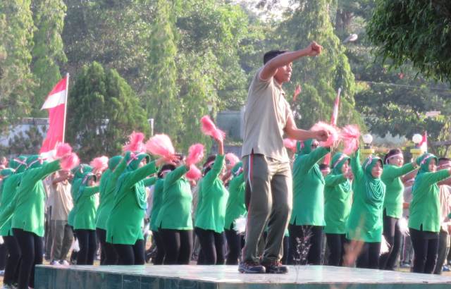 SINTANG [www.mediakapuasraya.com]-Sedikitnya ada 750 orang terdiri dari TNI, Polri, Pelajar dan masyarakat Sintang mengikuti senam Gemu Fa Mi Re di Lapangan Apel Korem 121/Abw, Selasa (04/09/2018) pagi. Senam pagi bersama ini sekaligus untuk memecahkan rekor Muri menari Gemu Famire 300 ribu orang dalam rangka memperingati HUT Ke-73 TNI tahun 2018.