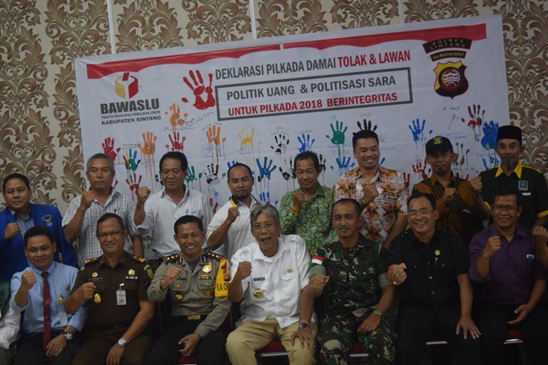 Fransiskus, Ketua Panitia pengawas pemilu Kabupaten Sintang menyampaikan bahwa komitmen bersama ini menjadi kunci bagi semua pihak untuk secara bersama-sama menciptakan setiap tahapan pilkada 2018 yang bebas dari pengaruh politik transaksional. Termasuk menggunakan SARA dalam kampanye.
