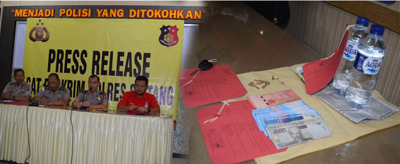 “korban disuruh pulang mengambil beras satu genggam, selembar uang 10 Ringgit Malaysia, perhiasan dan uang tunai sebesar Rp. 1.226.000. Barang-barang tersebut harus dibungkus menjadi satu menggunakan koran,” terang Eko.