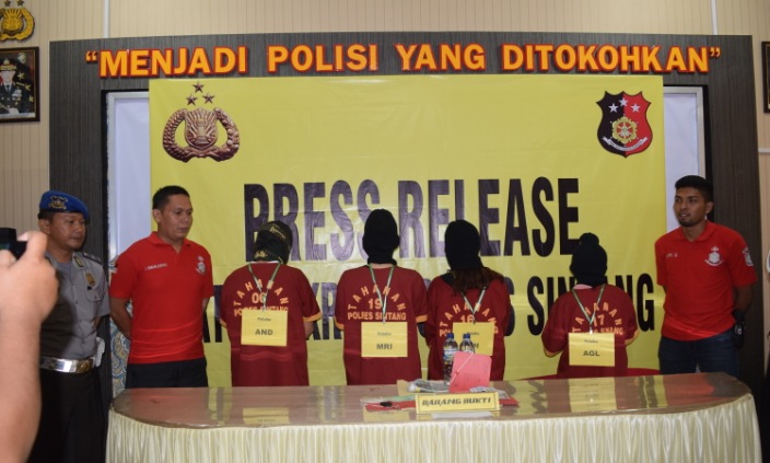 SINTANG [www.mediakapuasraya.com]-Empat orang tersangka kasus penipuan dengan cara menghipnotis korban telah mendekam di tahanan Polres Sintang. Sebelumnya empat orang yang terdiri dari tiga wanita dan seorang pria ini diamankan Polres Sekadau saat melintas di Jalan Sekadau-Sintang (Merdeka Timur) mengendarai Avanza Silver dengan plat KB 1121 XX pada Rabu (29/03/2017) lalu.