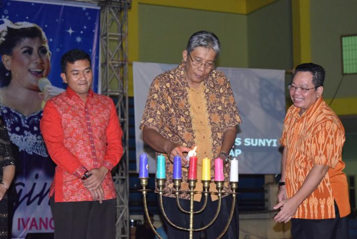 Pada kesempatan ini, para pejabat daerah dan tokoh agama menyalakan lilin natal bersama.