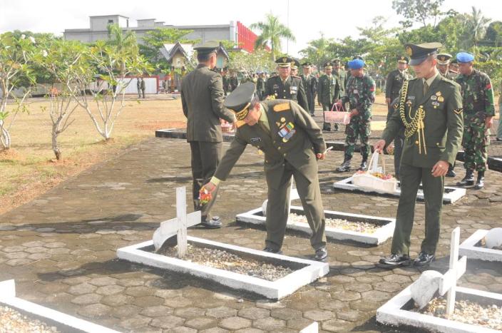 “Untuk itu kita sebagai generasi penerus bangsa yang juga merupakan prajurit TNI, saat ini masih diberi kesempatan berbakti kepada bangsa dan negara, kiranya dapat mengambil suri tauladan dari para pahlawan yang telah gugur untuk Negara dan Bangsa Indonesia yang kita cintai bersama,”Sambungnya.