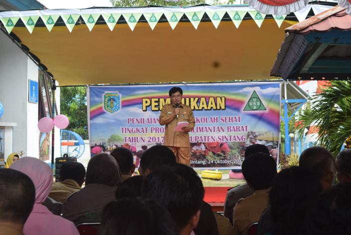 SINTANG [www.mediakapuasraya.com]- Asisten Pemerintahan Sekretaris Daerah, Abdul Syufriadi, SH.,M.Si mewakili Bupati Sintang, dr. Jarot Winarno, M.Med.Ph membuka rangkaian penilaian lomba sekolah sehat tingkat provisi Kalimantan Barat di TK Kemala Bhayangkari 8 Jalan Ade Irma Suryani Sintang, Selasa (24/10/2017).