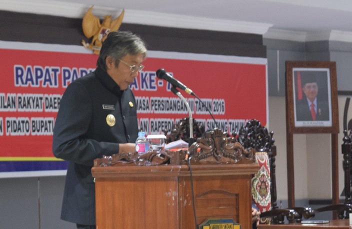 Penyampaian tersebut tertuang dalam rapat paripurna ke-7 DPRD Sintang masa Persidangan III tahun 2016 dalam rangka Penyampaian Pidato Bupati Sintang Terhadap 9 (Sembilan) Raperda Kabupaten Sintang tahun 2016.