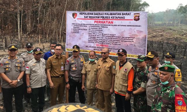 KETAPANG [www.mediakapuasraya.com] – Kapolda Kalimantan Barat memasang spanduk segel larangan beraktifitas pada tiga lokasi kebakaran hutan dan lahan (karhutla) korporasi dan perorangan, Selasa (24/9/2019).