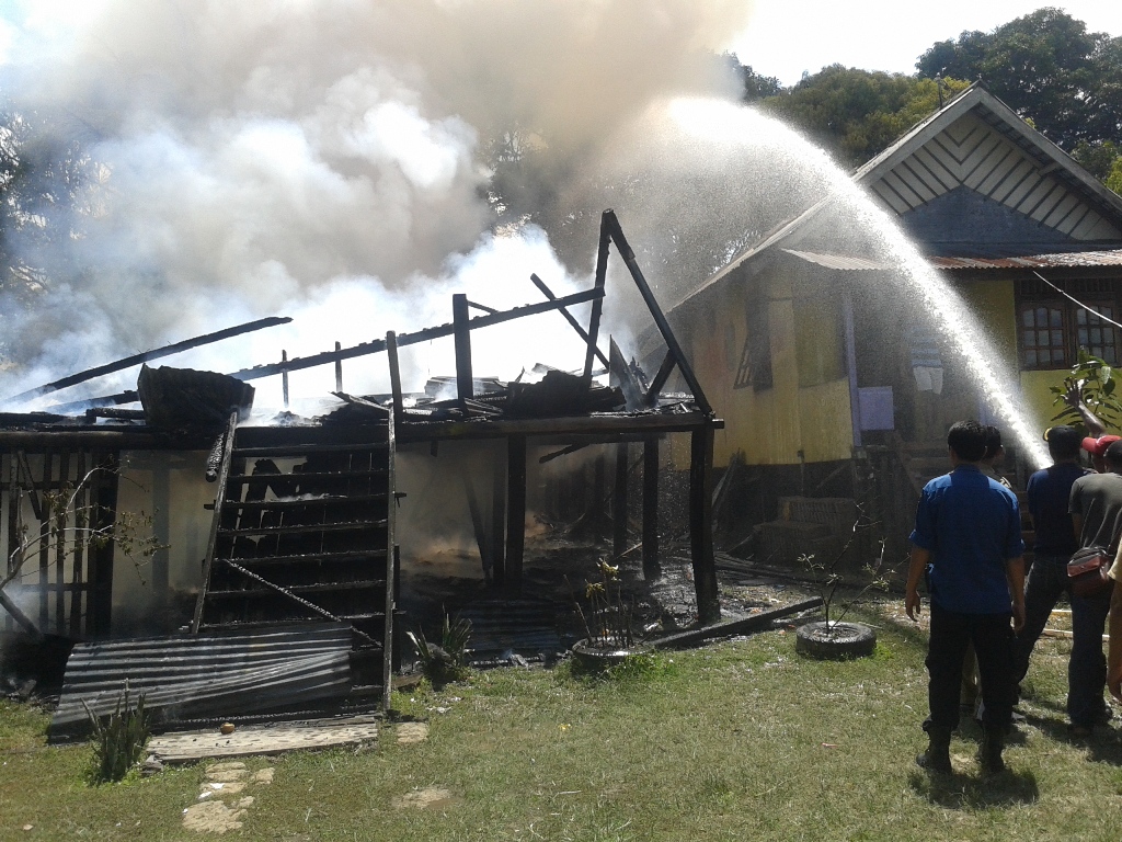 Kobaran api begitu cepat, meluluh lantakan bangunan rumah yang di dominasi berbahan kayu. Ia langsung menyelamatkan diri, ketika mendegar teriakan orang-orang dari luar rumah.