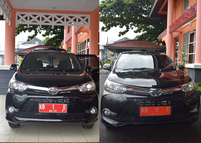 SINTANG [www.mediakapuasraya.com]-Dua buah mobil baru jenis Toyota Avanza Velos 1,5 Cc berwarna hitam yang terpakir tepat di depan Kantor Bupati Sintang, Kamis (18/02) mengenakan pelat merah dengan Nomor KB 1 E dan KB 5 E.