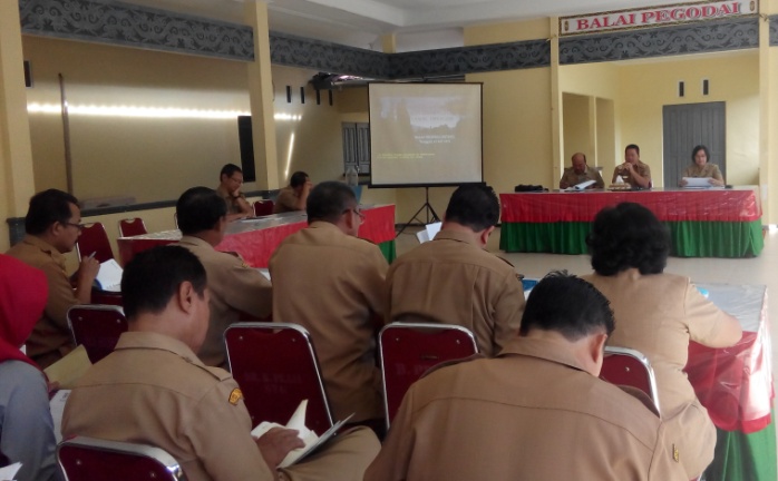Kepala BAPEDA, Kartiyus memaparkan kembali proses tahapan pelaksanaan kegiatan program P2Emas. Kegiatan-kegiatan tersebut meliputi, seleksi lokasi, survey identifikasi dan verifikasi lapangan, kemudian penetapan desa terpilih. “kemarin kami tidak bisa ke Desa Kalangan Juoi karena transportasi sungai dan pada tanggal yang ditetapkan untuk berangkat, sungai sedang surut jadi tidak memungkinkan untuk tim sampai ke sana,” ungkap Kartiyus. Sehingga verifikasi dilakukan melalui keterangan dari camat Ambalau.