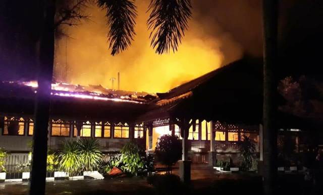 SINTANG [www.mediakapuasraya.com]-Pendopo Rumah Dinas Bupati Sintang ludes dilahap si jago merah, pada Kamis (26/07/2018) dini hari.