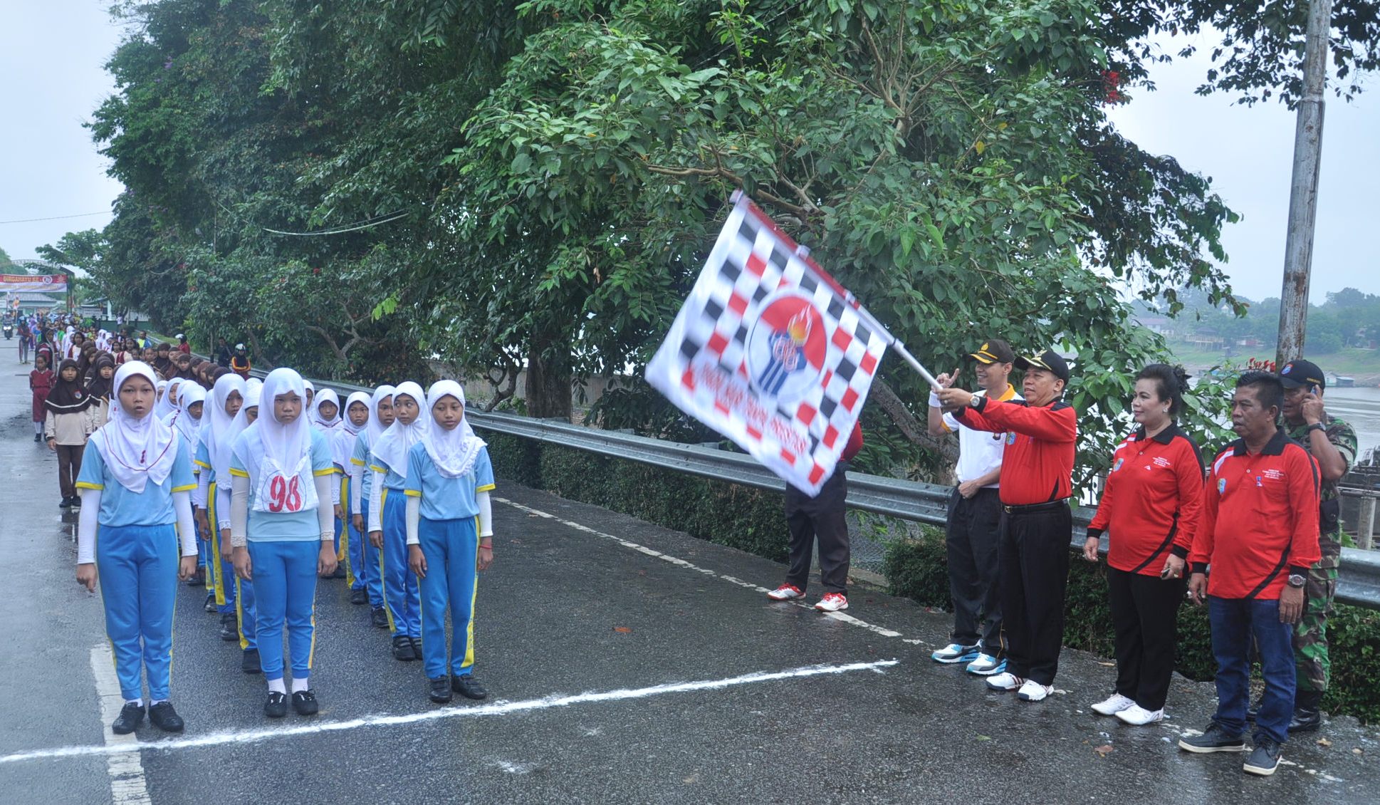 SINTANG-KALBAR, (MKR): Kota Sintang yang diguyur hujan pada pagi Kamis, 13 Agustus 2015 tidak menyurutkan ratusan pelajar Sekolah Dasar (SD) untuk mengikuti lomba gerak jalan dalam rangka memeriahkan Hari Ulang Tahun Kemerdekaan Republik Indonesia yang ke 70 Tahun 2015. Bertempat di depan rumah jabatan Bupati Sintang, lomba gerak jalan dilepas oleh Bupati Sintang Milton Crosby.
