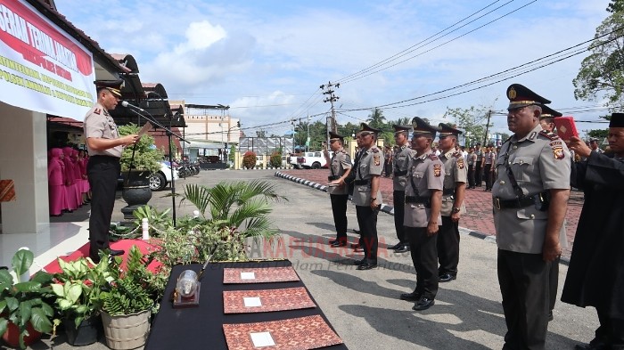 SINTANG [www.mediakapuasraya.com]- Kepolisian Resort Sintang menggelar upacara Serah Terima Jabatan (Sertijab) perwira di halaman Polres Sintang, Selasa (29/10/2019).