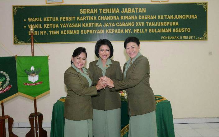 KUBU RAYA [www.mediakapuasraya.com]-Ketua Persit Kartika Chandra Kirana Daerah XII/Tanjungpura Ny. Hetty Andika Perkasa memimpin acara serah terima jabatan Wakil Ketua Persit KCK Daerah XII/Tpr dari Ny. Tien Ahmad Supriyadi kepada Ny. Helly Sulaiman Agusto di Kantor Persit Daerah XII/Tpr Jl. Arteri Alianyang No. 1 Sungai Raya, Kubu Raya, Selasa (09/05/2017) Sore.