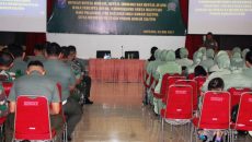 SINTANG [www.mediakapuasraya.com]-Anggota Prajurit dan Persit KCK Koorcabrem 121/Abw PD XII/Tpr mengikuti penyuluhan Bintal umum dari Bintaldam XII/Tpr bertempat di Balai Prajurit