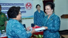 SINTANG-KALBAR, (MKR): Ketua Tim Penggerak Pemberdayaan Dan Kesejahteraan Keluarga (TP PKK) Kabupaten Sintang Ny. Katty Evelina Milton resmi menyerahkan memori pelaksanaan tugas