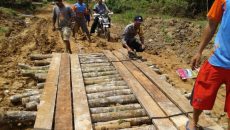 SINTANG [www.mediakapuasraya.com]- Binkamtibmas Desa Binjai Hilir Brigadir Sodikin S.H bersama warga dusun Suka jaya Desa Binjai Hilir Kecamatan Binjai hulu memperbaiki jalan
