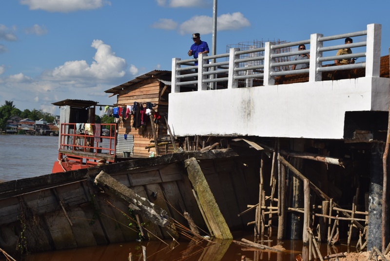 SINTANG [www.mediakapuasraya.com]-Wakil Bupati Sintang Askiman pada Selasa (16/05/2017) meninjau lokasi barau Dermaga Sungai Durian yang roboh. Askiman mengaku prihatin melihat kondisi barau itu.