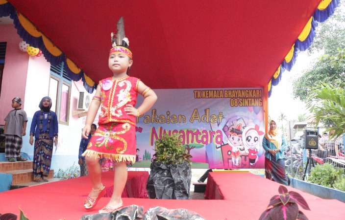 Kepala Sekolah TK Kemala Bhayangkari 08 Sintang Utin Rini Agustini, mengatakan, kegiatan fashion show yang ditampilkan ini sangat sesuai dengan sifat anak yang penuh kasih, terkesan elok dengan balutan busana adat daerah dengan berbagai model serta warna yang sangat pas mereka kenakan.